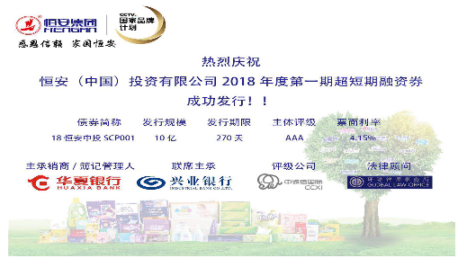 830日,人生就是博(中国)投资有限公司发行2018年度第一期超短期融资券,发行金额10亿元,期限为270天,主体评级AAA。最终发行价格4.15%,全场申购22.8亿,申购比2.28倍。